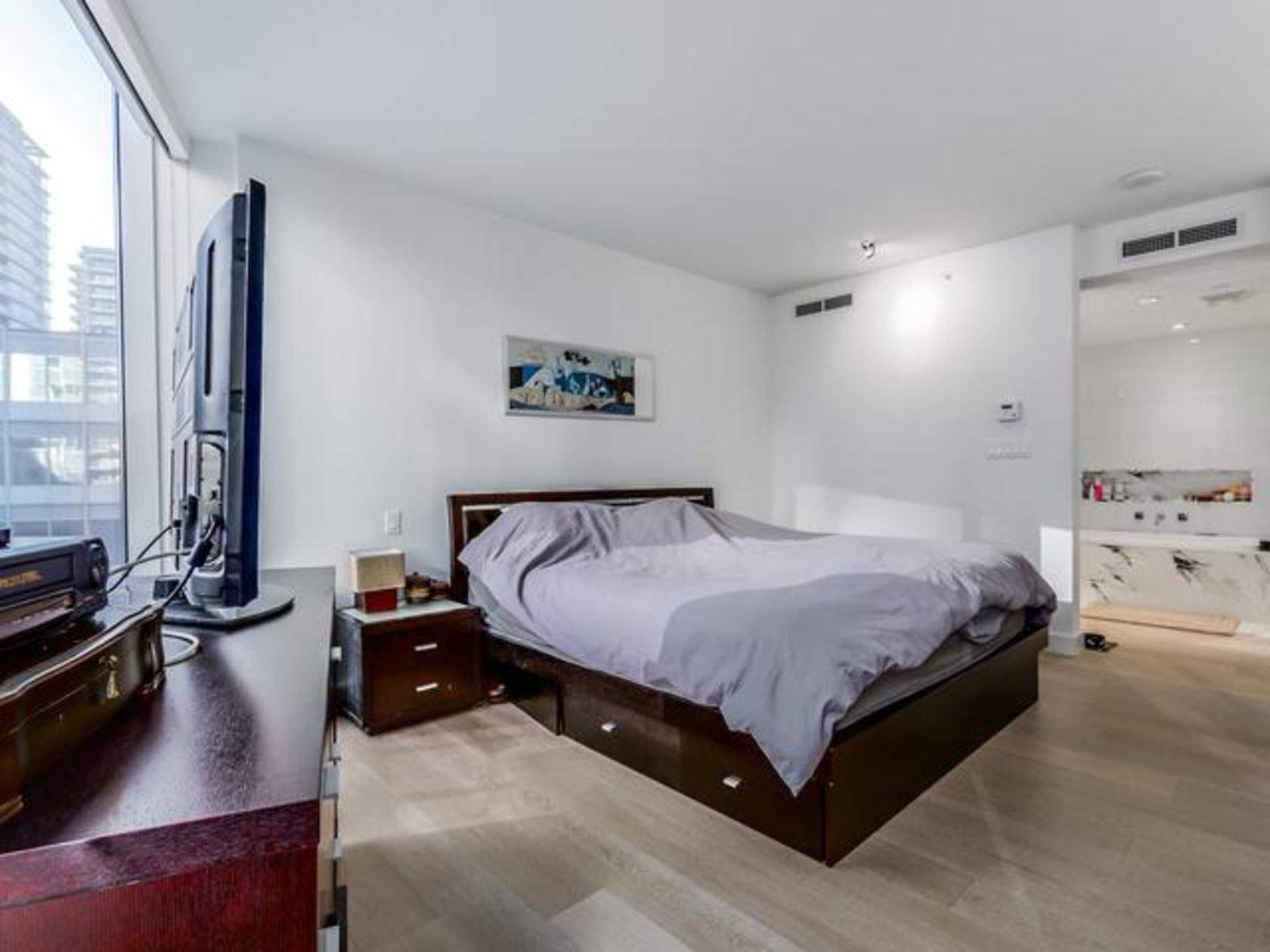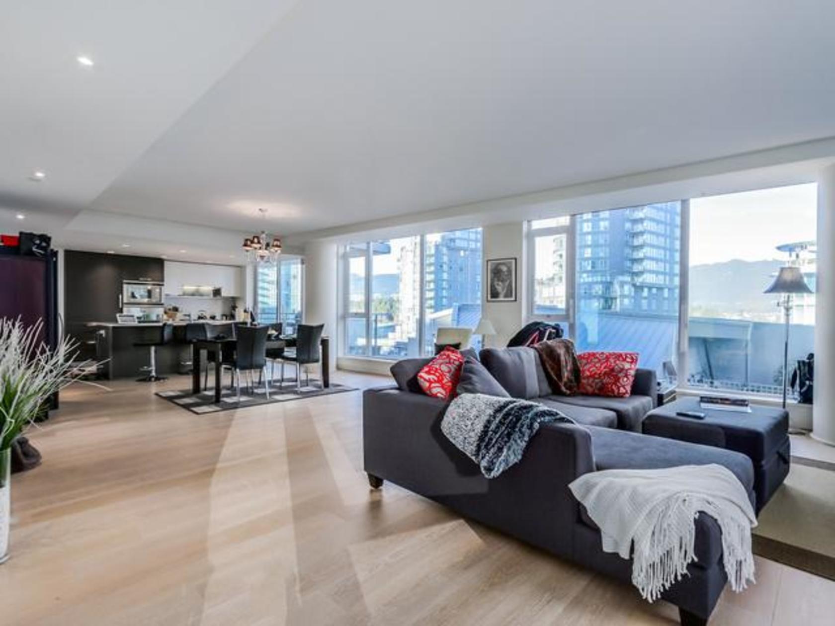 Welcome to the prestigious West Pender Place. This gorgeous unit features over 1600 sq. ft. of living space with 2 beds, 3 baths, over-height ceilings, floor-to-ceiling windows, wide plank brushed Oak hardwood flooring throughout, and a spacious balcony. Flawless floor plan with bedrooms on opposite ends, open kitchen, and a massive living room, perfect for entertainment. Corridor mountain and some water views. Italian Dada kitchen, with German Gaggenau appliances, Sub-Zero f…ridge, and quartz counters. 2 zone Air Conditioning system. 2 parking stalls and a large private storage room. 5-star amenities including 24 hours concierge, indoor pool with lounge area, sauna/steam, exercise room, party room, and a rooftop terrace equipped with a garden and BBQ. Call us for a private tour.