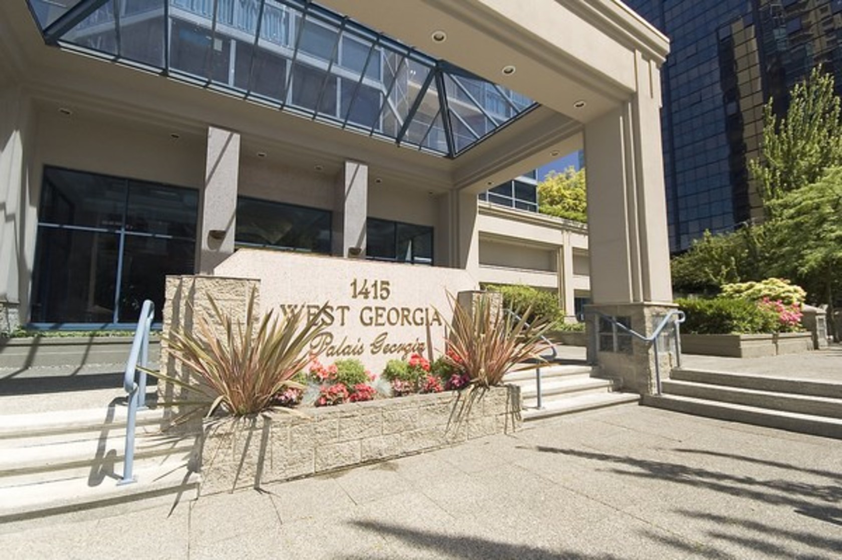 Coal Harbour water view property at 'Palais Georgia'. This N/E corner 2 bedroom/2 bath suite was beautifully renovated in 2011 with engineered hardwood floors, open kitchen with granite counters and stainless steel appliances (Wolf gas range, 2 drawer dishwasher, 3 door fridge). Floor to ceiling view windows in living room and master bedroom, large view balcony and insuite laundry too! This suite is located on the quiet water view side of the building. Hotel style amenities i…nclude pool and jacuzzi.