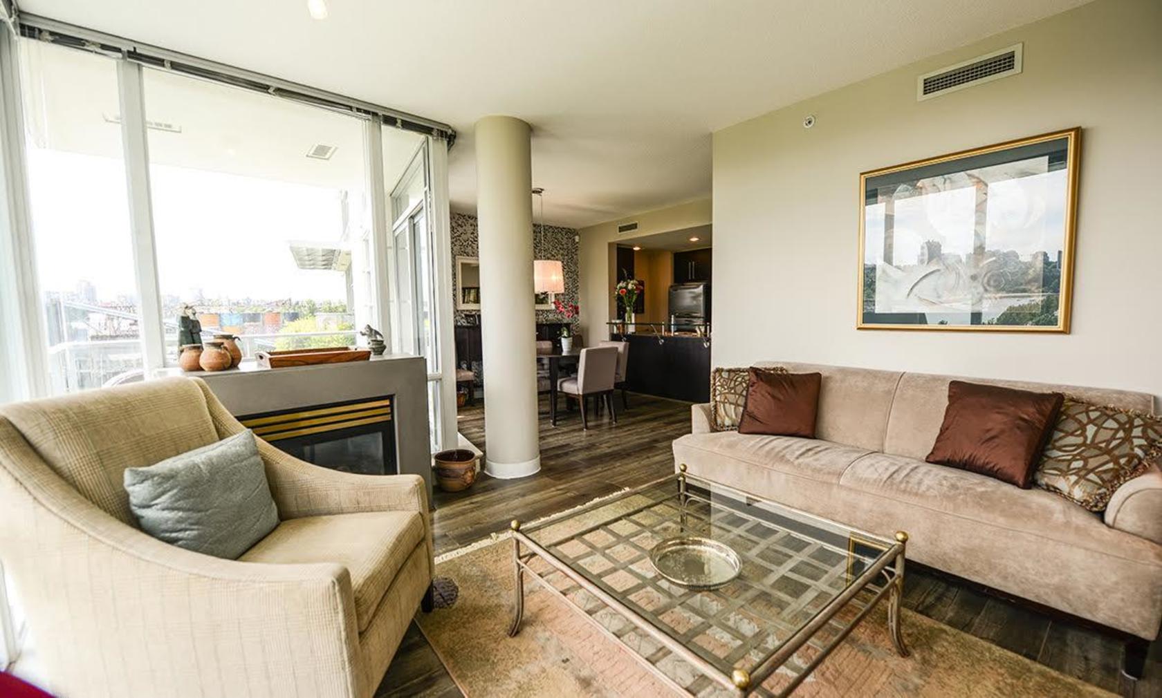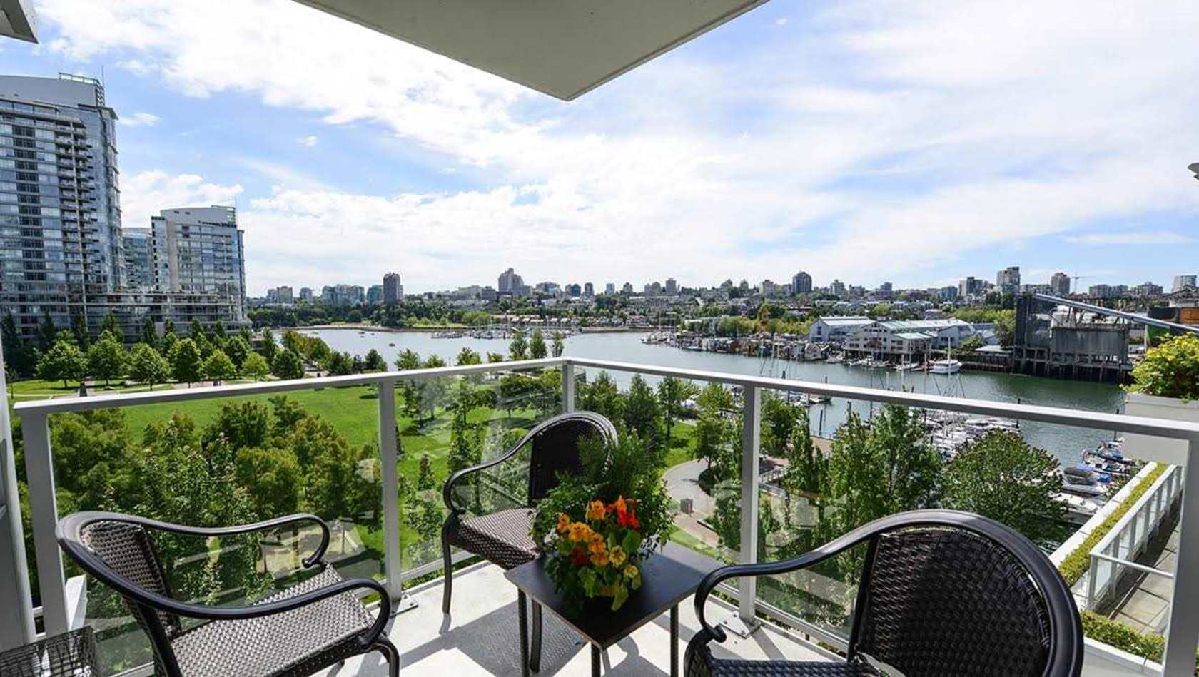 LOCATION, VIEW & QUALITY are all offered in this amazing opportunity waterfront living ICON II @ finest with protected views to Wainborn Park & water/False Creek. This lovely SouthEast facing 2 beds, 2 bath plus storage unit is over 1026 SQ featuring open modern kitchen, floor to ceiling windows, Gas stove & fireplace, Central air conditioning, good size patio w/ BBQ connection & close eye level water views. Superior 24hrs amenities include 80' lap pool, gym, …billiards, theater, party room, steam rooms, hot tub, pitch n pot golf practice area and 24hr concierge. Pets/rentals ok. Modern laminate flooring, mesmerizing views & unbeatable location. Right on the Seawall, steps to shops, cafe & short ferry ride to Granville Island for fun. A pleasure to show and great tenant in place.