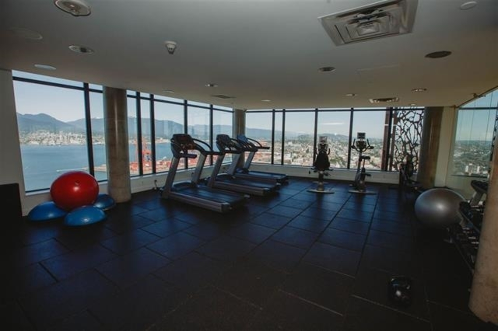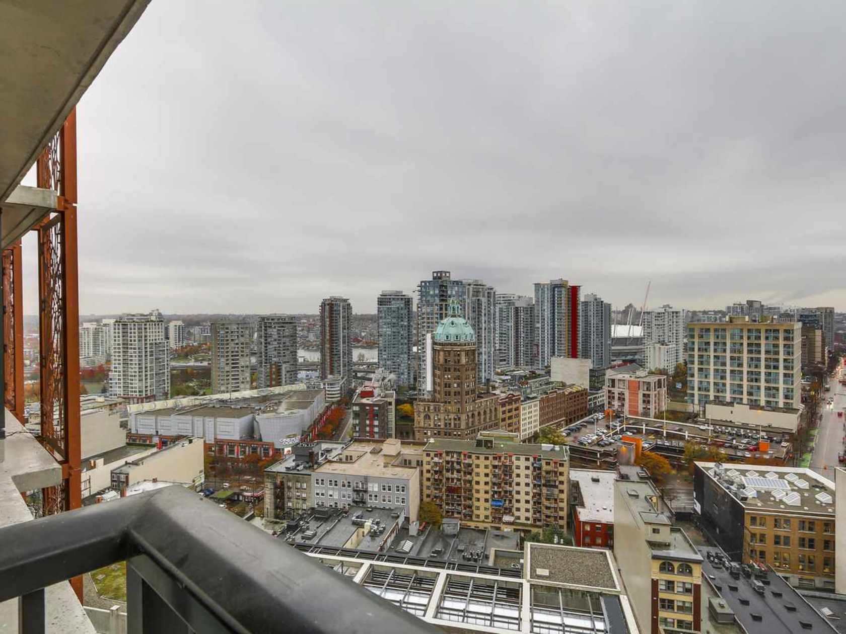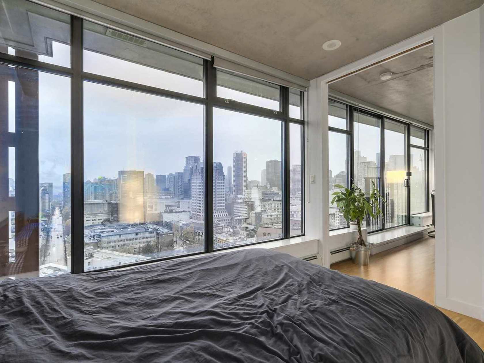 - View: Open city view, partial water