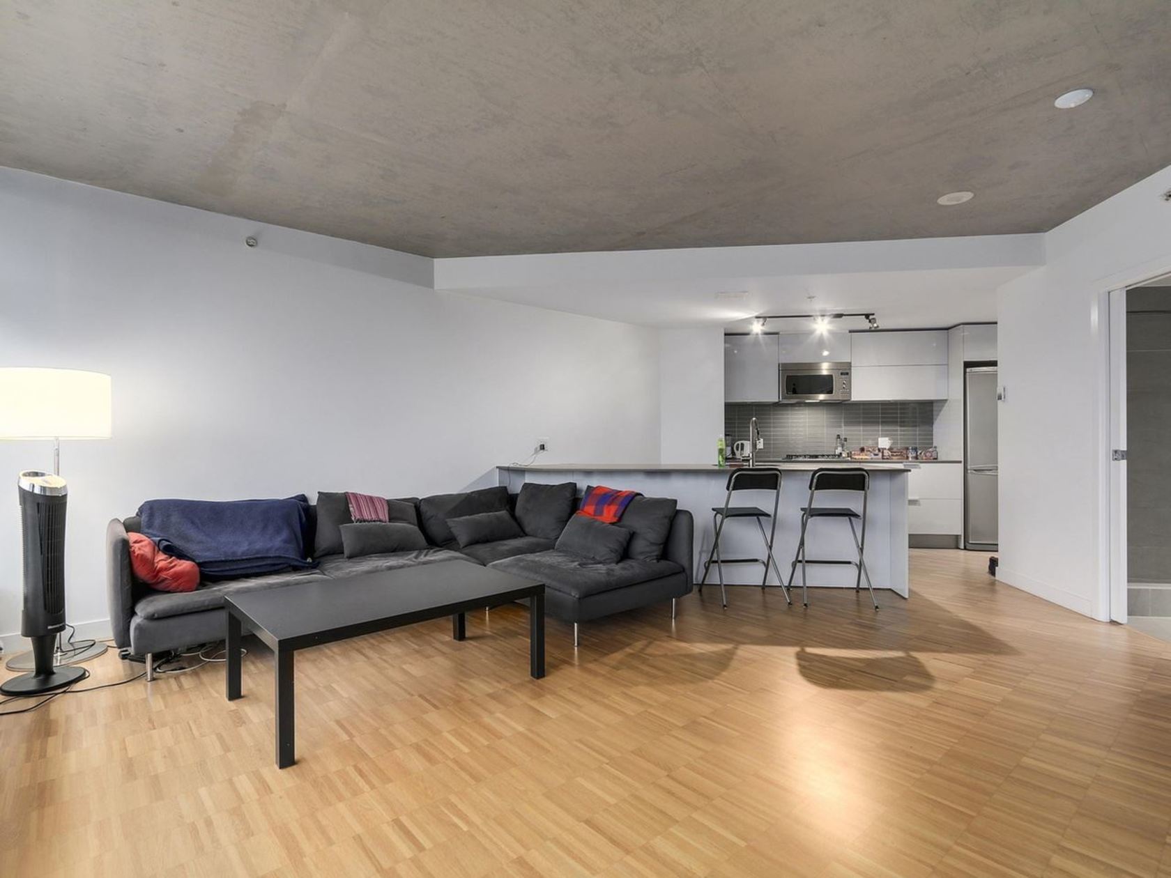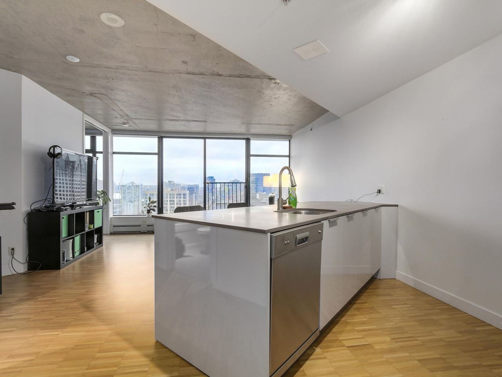 South facing with open city and False Creek View. Located in historic Gastown; features include 9' polished concrete ceiling, floor to ceiling windows, bamboo laminate floors, custom Eggersman kitchen w/ soft close doors, Stainless steal appliances, gas cooktop, glass tile backsplash & stone countertops. bathroom with separate glass shower & tub. Amenities at Club W feature 4,600 SF including outdoor kitchen BBQ, wrap around patio, hot tub, gym, lounge & 360 degre…e views. Maintenance fee includes heating. Public open house Saturday and Sunday November 5th/6th 3-5pm