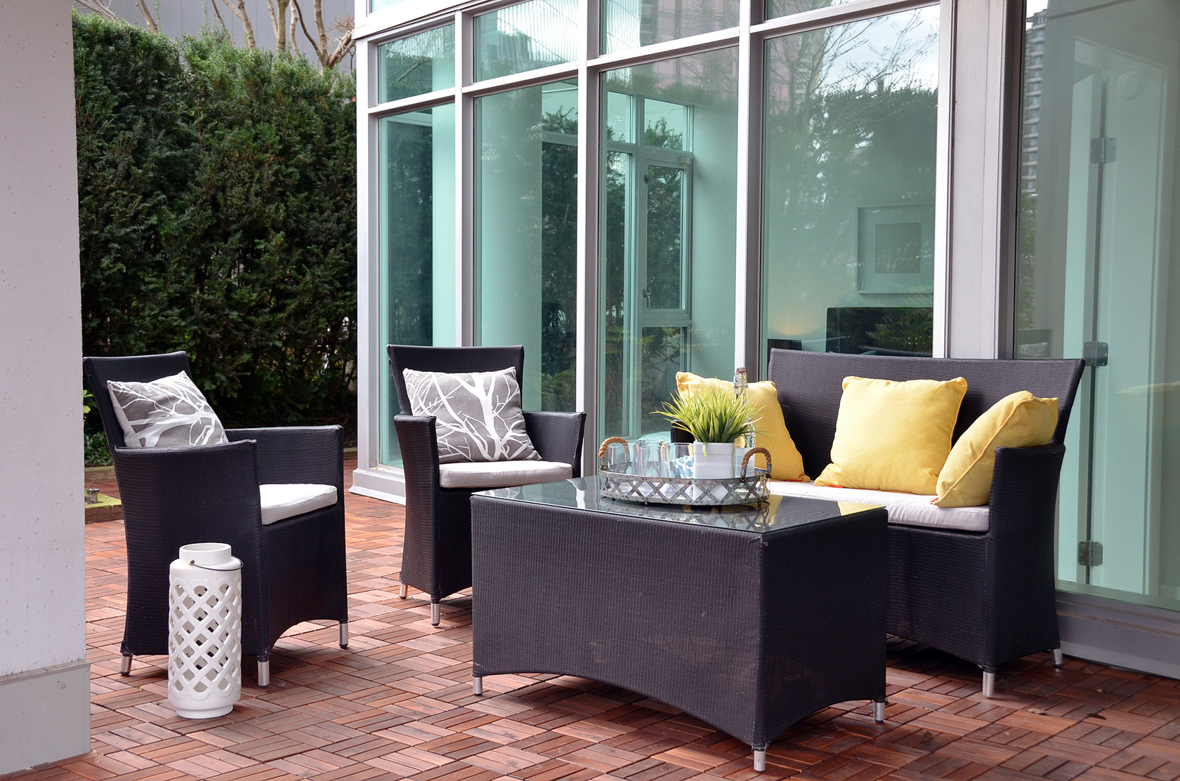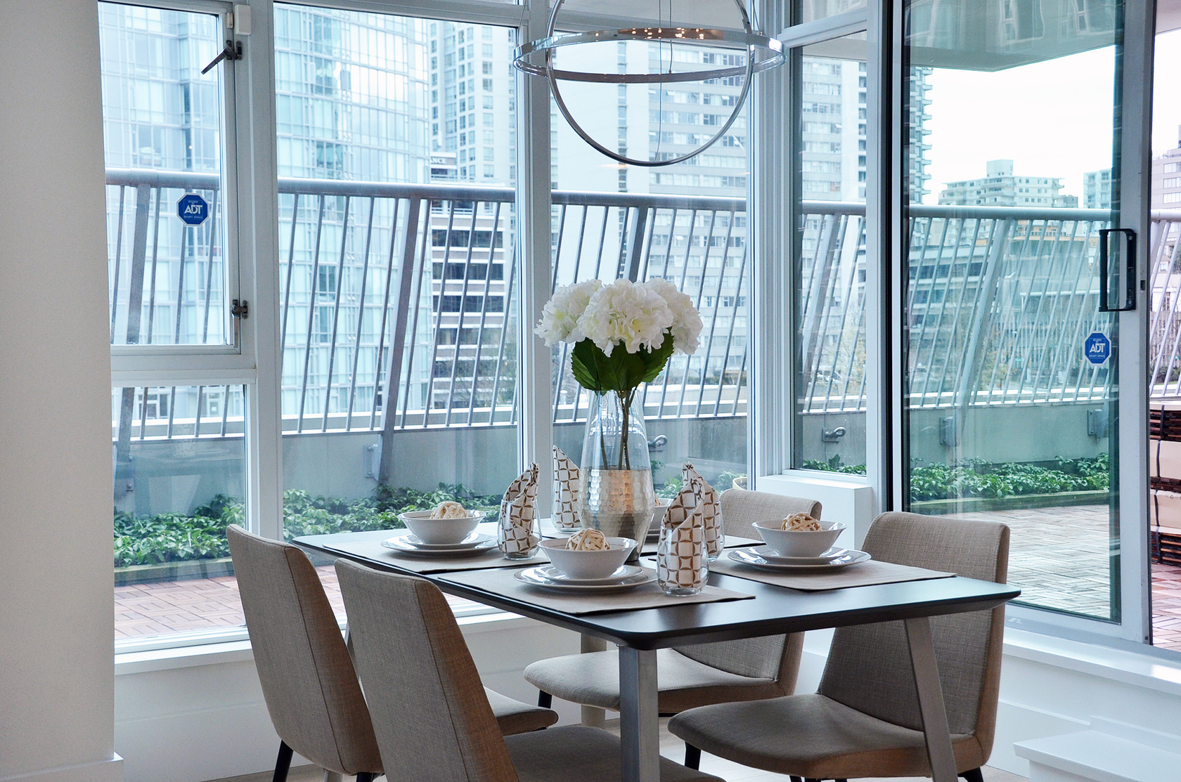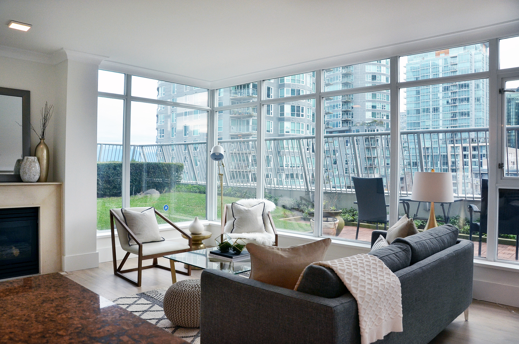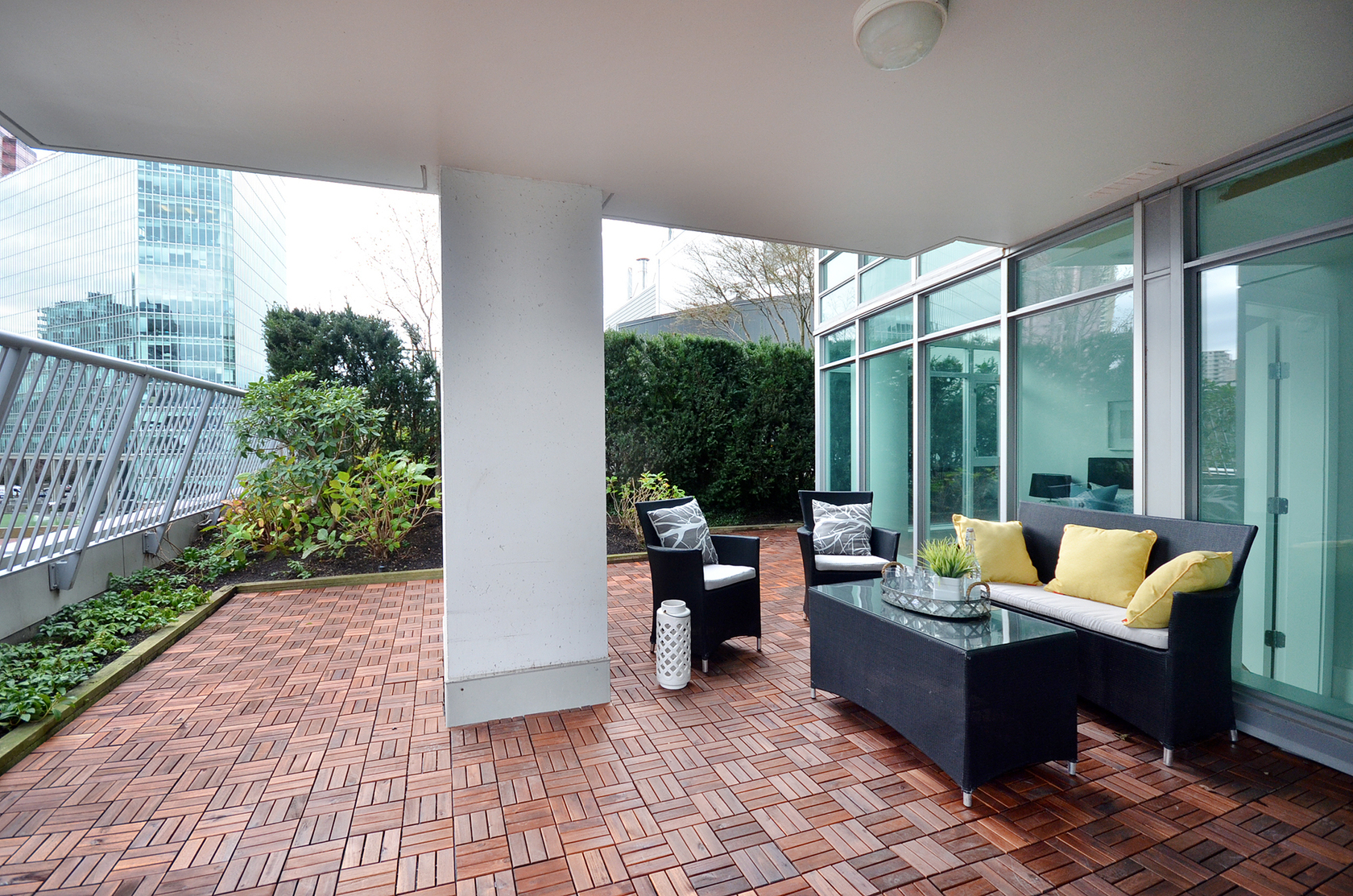 A Coal Harbour jewel at The Bayshore Gardens. Elegant 2 bed, Corner, Air Conditioned home with approx 830sf PRIVATE WRAP AROUND TERRACE, enjoying unobstructed corridor view of Coal Harbour Marina. Flawless floorplan. Open concept gourmet kitchen with high-end S/S appliances, cold water filter system, and granite counters. Spacious Master, with a 5 piece ensuite, and a large Walk-In with closet organizers. Flex-Room/Office. Gas Fireplace, Gas Cooktop, and Gas bib on the Terrac…e for BBQ. Built-in sprinklers in garden area. NEWLY RENOVATED and Move-In ready. Building offers a fitness facility, sauna, meeting area w/kitchenette, visitor parking, and 24hr Concierge. Steps to the Seawall, Stanley Park, and World Class Restaurants.
