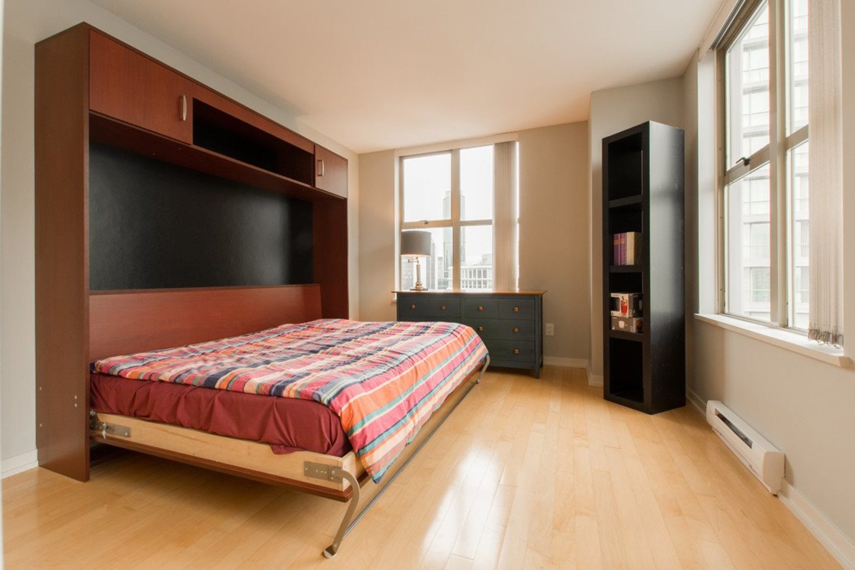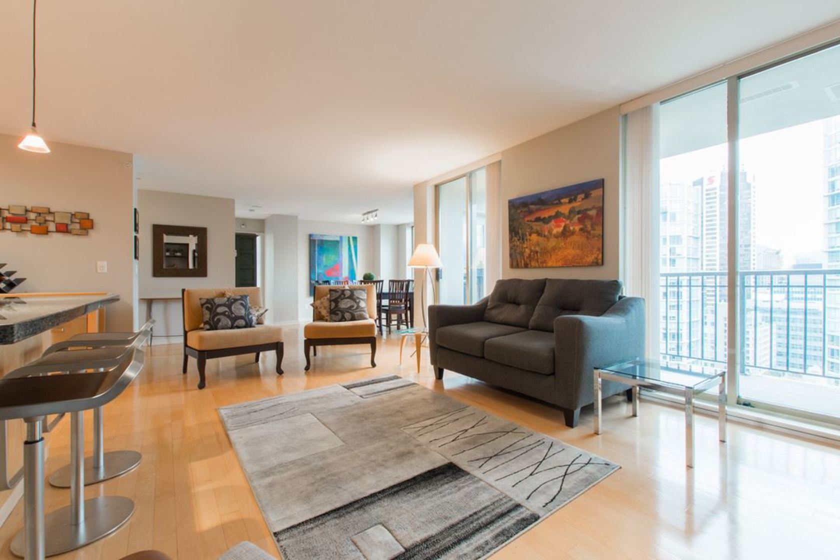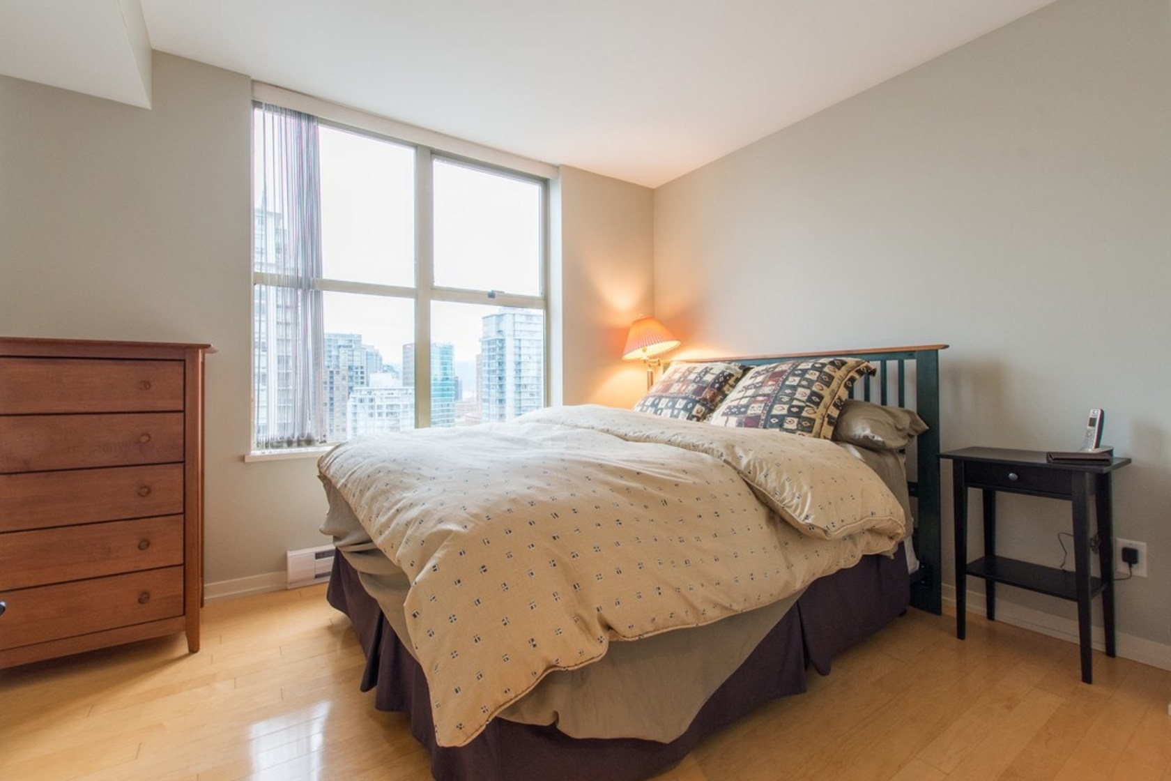 Upper NW corner suite provides city views & privacy with only 4 units on floor. Open concept spacious living-dining-kitchen makes entertaining easy and comfortable. Gourmet kitchen has s/s appliances, granite counters & generous cabinet space. H/W floors throughout & gas fireplace between living room & master BR (which has large walk-in closet & full ensuite). Murphy bed in 2nd bedroom. Sizeable balcony with gas connection for BBQ. Immaculate condition, se…ller is original owner. Highly sought after, Bosa-built Mondrian 2 is located in heart of downtown, steps from terrific restaurants, shopping, grocery stores, parks & entertainment. A must-see for those seeking 1-level living with condo convenience. Open Sat 2-4pm, Sun 12-2