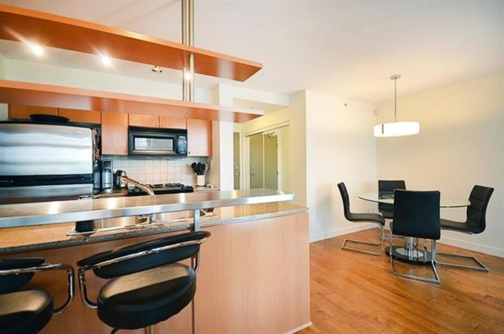 Beach Cres. Living at its best! This beautiful, bright & spacious 1 bed & den is what you've been waiting for. Absolutely no wasted space + a MASSIVE PRIVATE DECK!! Open kitchen with stainless steel appliances, and granite counters, insuite storage/nook with custom cabinetry and organizers, Engineered flooring throughout, and custom closets. The huge 450sf sunny terrace is the WOW FACTOR, improved with brand new wood flooring, perfect for summer entertaining. Azura re…sidents enjoy membership at Super Club featuring a well equipped gym, squash court, swimming pool, sauna, steam room, hot tub, a guest suite, 2 theater rooms, party room, and 24 hr concierge! Open House Sat/Sun Feb 11/12, 2-4pm.